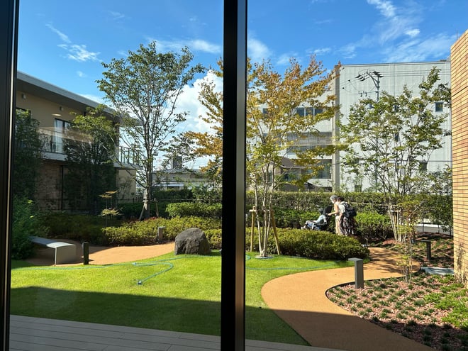 この日もとても暑い日だったので時間にすると一瞬でしたが、中庭のお散歩を楽しまれていました🌞🌳戻られた時のご入居者のお顔がとても嬉しそうでした😊