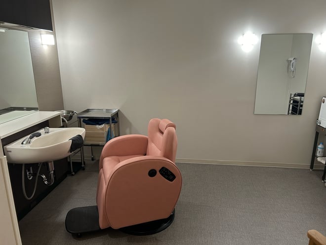 理美容専用の椅子と、車いすのままカットするスペースもあります。