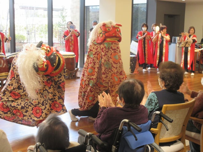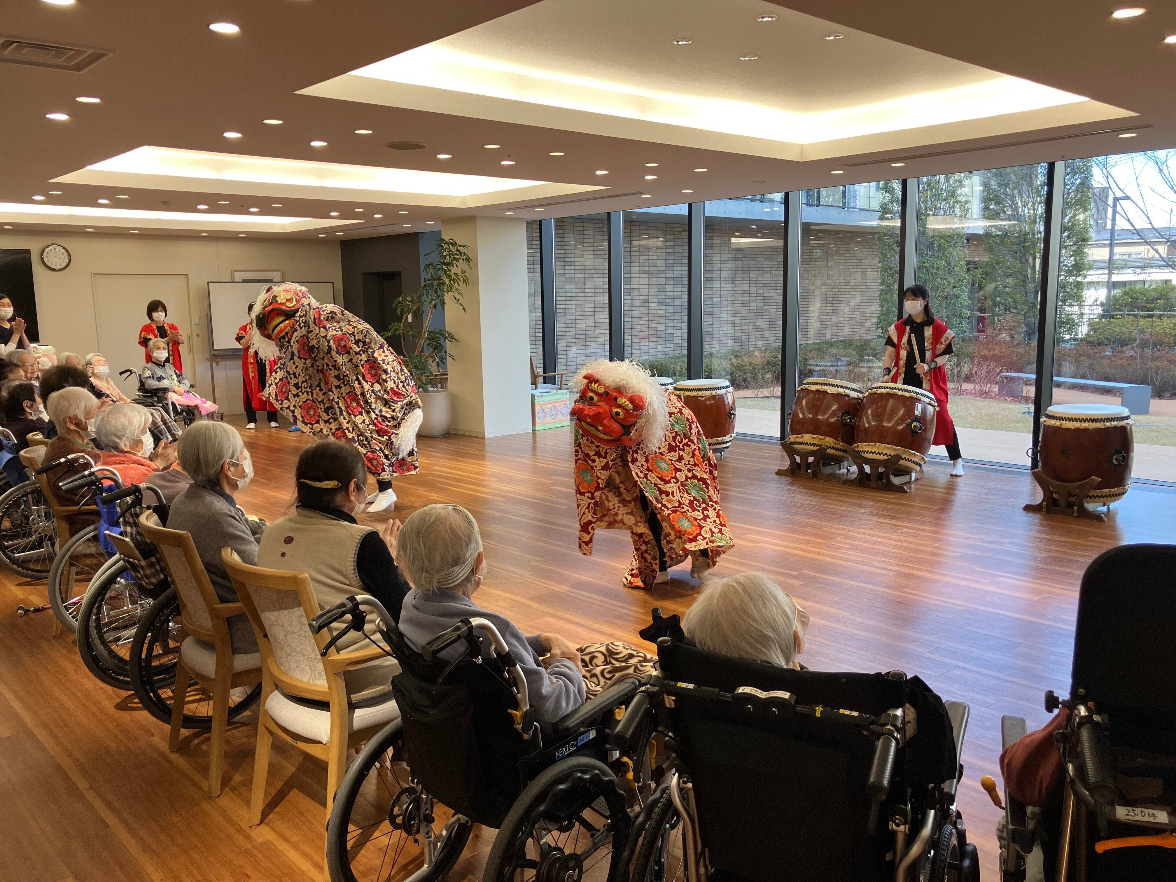 1月19日、『和太鼓 桜』の皆様に獅子舞と和太鼓を披露していただきました😊
