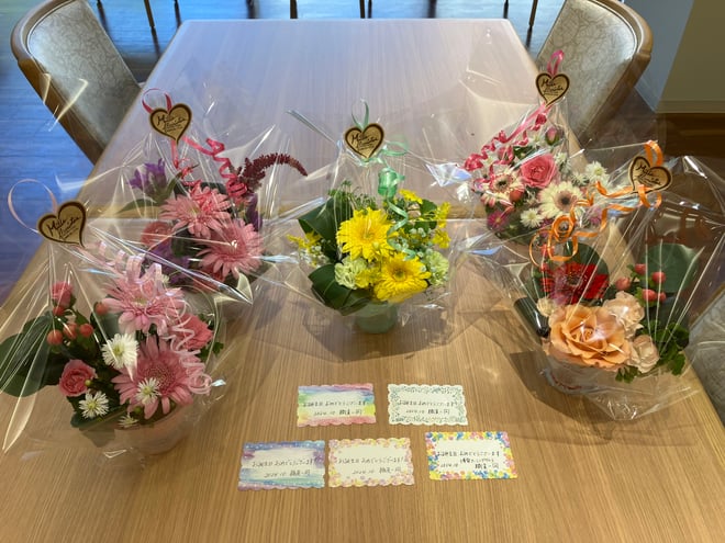 10月のお誕生日会 2024年10月31日 博愛ナーシングヴィラ NEWS イベント 目次 投稿が遅れてしまいましたが、10月17日にお誕生日会を開催しました😊 10月は5名の方がお誕生日を迎えられ、なんと97歳の方が3名いらっしゃいました🤗 お一人は入院中でしたので、病室へお届けしました💐 毎回思うことなんですが、ご入居の皆様、お写真を撮られ慣れていて😳👏いつも素敵な笑顔をカメラに向けてくださいます。 肌寒い日もある今日この頃ですが、皆様いつまでも穏やかにお元気でお過ごしいただきたいです😊